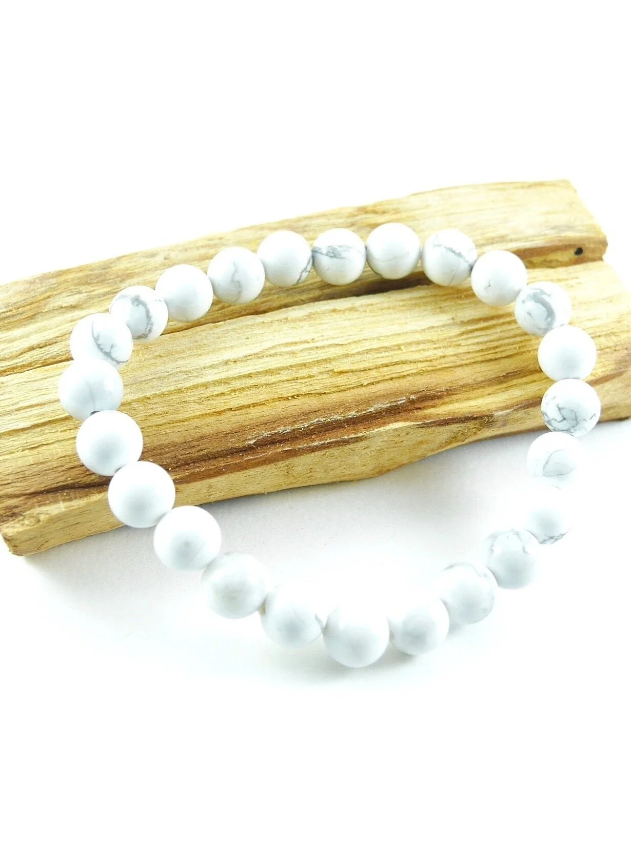 En bracelet, le poignet droit sera associé au corps, tandis que le gauche à l'esprit. Portée en journée sur le poignet gauche, l'howlite éloignera les sentiments négatifs et stimulera votre intelligence. Porté la nuit ou placée sous l'oreiller, l'howlite vous aidera à trouver le sommeil et à bénéficier d'une nuit réparatrice.